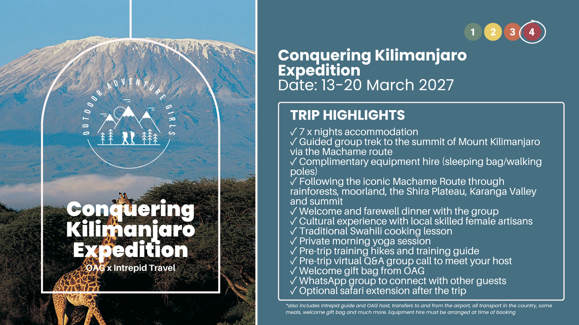 ✓ Pre-trip training hike and training guide from OAG